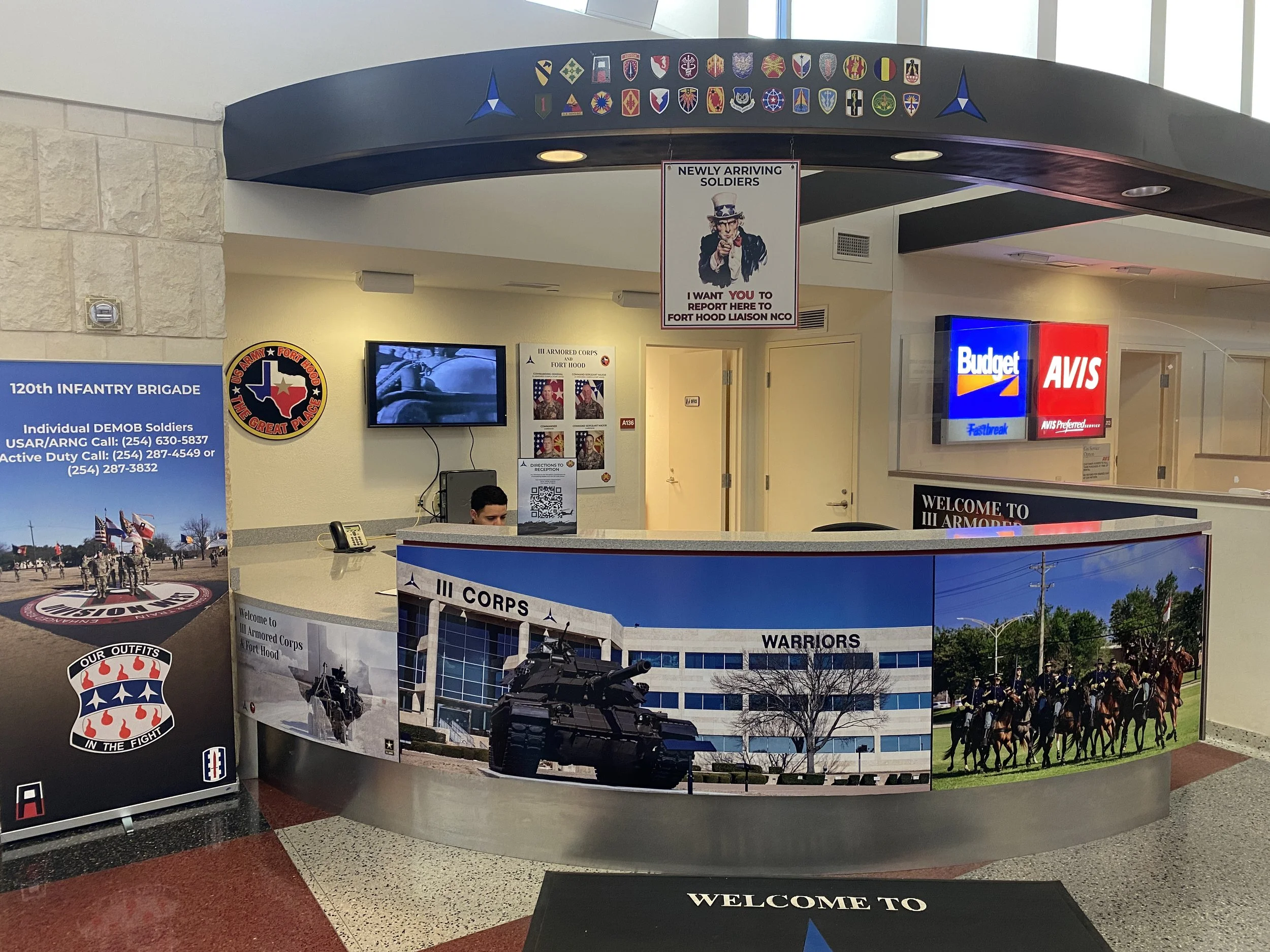 The Killeen Airport Project was a complete design overhaul of all the signs and banners displayed at the military support desk for newly incoming Fort Cavazos Soldiers.